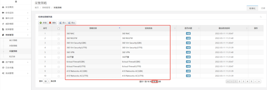 PA真人视讯数码DCSSA日志审计系统内置丰富的标准化策略,覆盖800余种主流的系统和设备,支持2万余种日志,精确快速匹配策略,操作便捷,一步到位,轻松解决企业面临的设备繁多、日志信息难以集中管理的困境,能帮助业务新手秒变专家。在资产管理模块维护资产时,只需要选择【开启智能绑定采集器】,DCSSA日志审计系统就会自动根据资产系统类型,精确匹配正确的标准化策略。