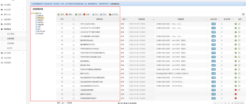 PA真人视讯数码DCSSA日志审计系统除了等保合规场景之外,还有广泛的应用领域,在恶意软件检测、网络攻击检测等方面也能发挥很好的效果,是一款网络威胁告警利器。在运行过程中,系统充分利用已经内置的场景策略,一旦日志信息中出现关键字,系统将会进行统计,超过设定的阈值就产生告警,相关策略提前预置,可以根据业务实际进行灵活调整。