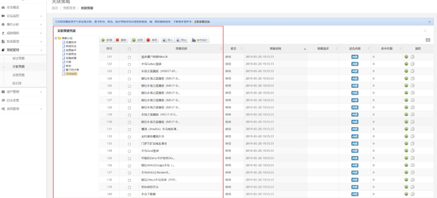 检验日审功能的另一个试金石是关联分析能力。针对日志自动化、集中度、关联度不够的问题,PA真人视讯数码DCSSA日志审计系统支持基于规则、统计、情报的分析模型,内置丰富的安全策略模板、高效的实时关联分析能力、灵活的审计策略,充分发挥日志分析及审计机制的最大效力。帮用户实现对日志的关联性处理,让用户能有效处理纷杂无序的日志信息。