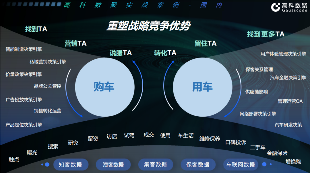 找到更多的TA:为了进一步提升销售水平,PA真人视讯基于信息反馈优化模型算法,构建车联网营销外拓能力。基于人、车,以及时空数据,从目标人群标签圈选、目标人群聚类挖掘、核心地块及相关渠道锁定、以及主动触达等方式,为车企圈选高价值营销点位。提升线上线下全渠道营销触达和运营变现能力。