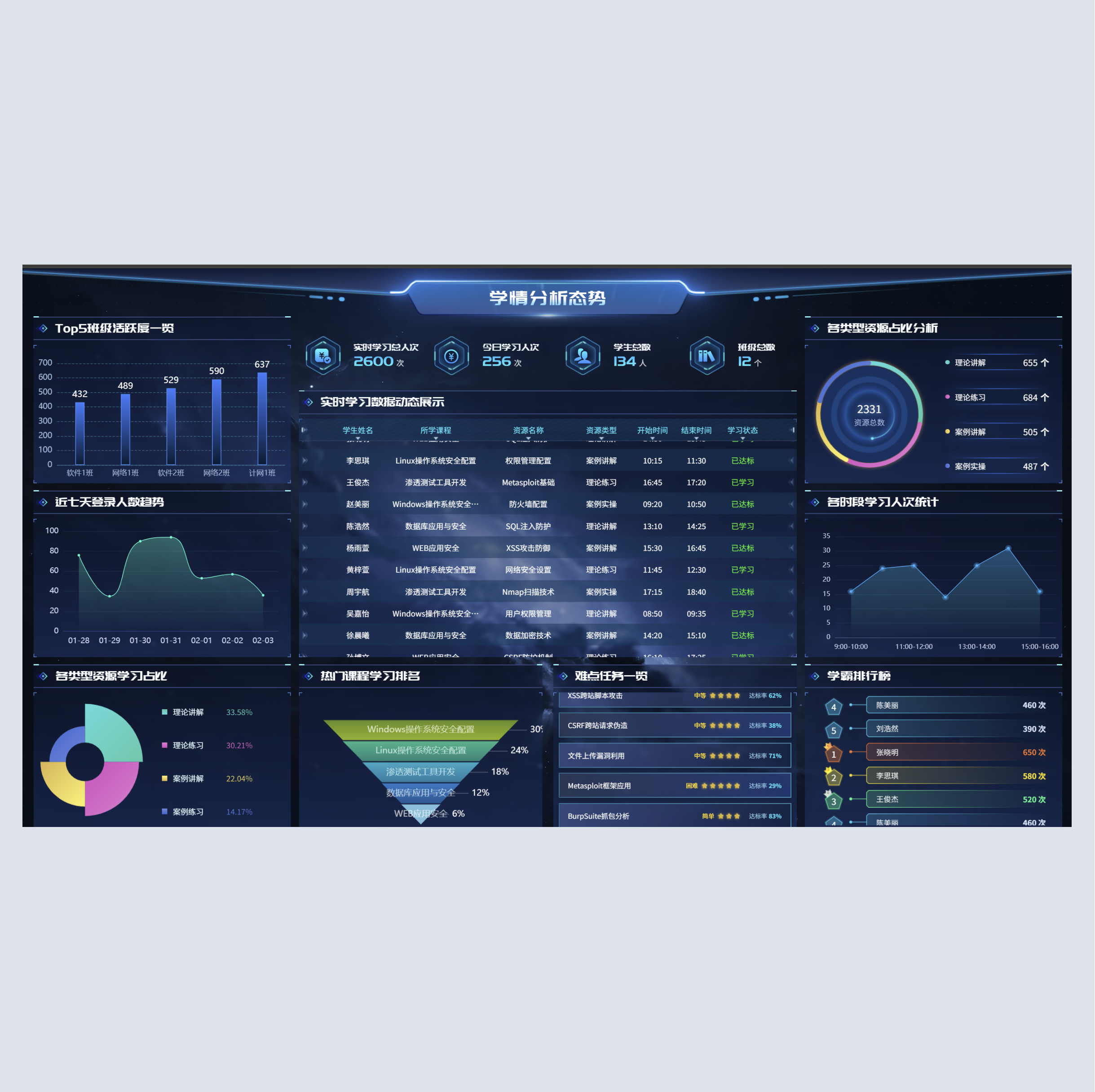 (3)教学驾驶舱,整合和可视化教学全流程数据
